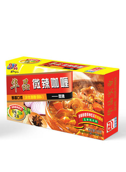 配料:食用植物油、食用淀粉、咖喱粉、食用鹽、白砂糖、香辛料、味精、濃縮蘋果汁、酵母抽提物、食品添加劑(5’-呈味核苷酸二鈉)、食用香精