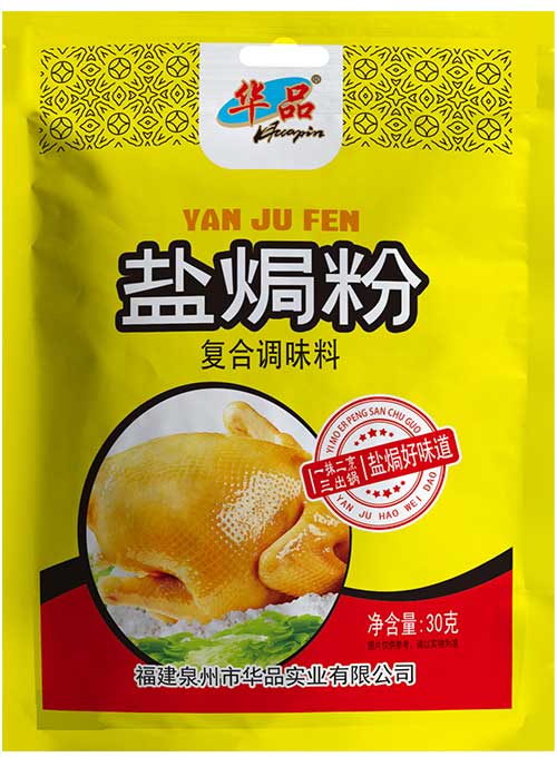 規格:30克配料:食用鹽、沙姜、味精、食用淀粉、白芷、梔子、肽鮮復合鮮味料(復合調味料)、食用香精食用方法:鹽焗雞使用方法 準備食材:童子雞一只,鹽焗粉30g,植物油2湯勺 做法:將雞洗干瀝凈,把植物油和華品鹽焗粉均勻地涂抹在雞表面和腹內,放入冰箱腌制30分鐘。裝入盤中,隔水蒸熟即可食用。 鹽焗蝦使用方法 準備食材:500克蝦,15克鹽焗粉,蔥姜 做法:將蝦處理干凈后倒入鍋中,加入料酒,蔥姜,鹽焗粉,充分搖晃均勻,不需加水,大火燜煮3分鐘即可出鍋。